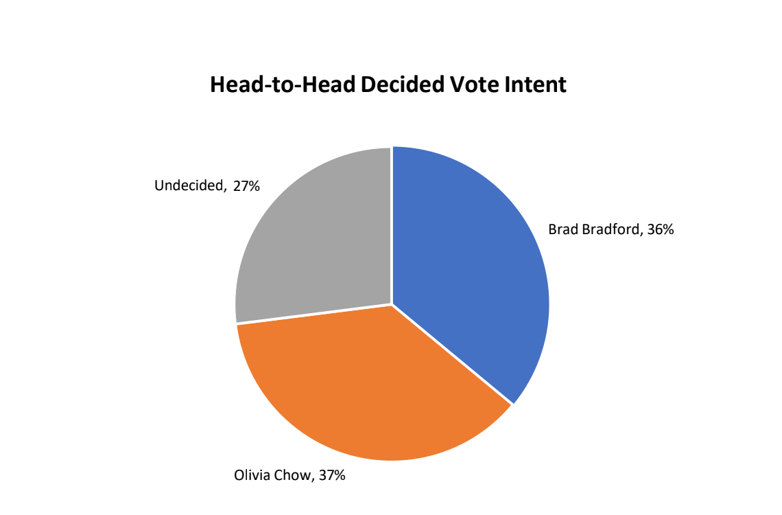 In another poll that shows just a head to head race between Chow and Bradford, no Anthony Furey in the mix, the race appears tighter.