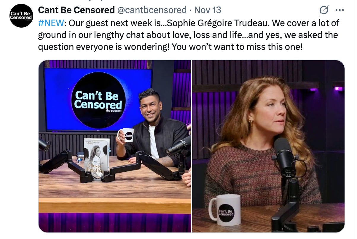 We’ve been treated to the breathless reporting that Justin Trudeau is dating Katy Perry. Next week, on the Can’t Be Censored Podcast from Travis Dhanraj and Karman Wong, Sophie Trudeau will appear and discuss all the news.