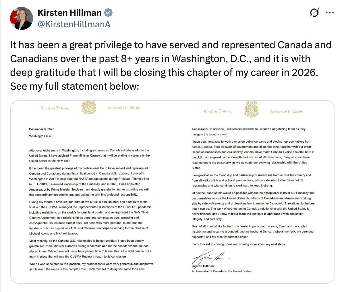 Now, as I had predicted months ago, Kristen Hillman will step down in the New Year.