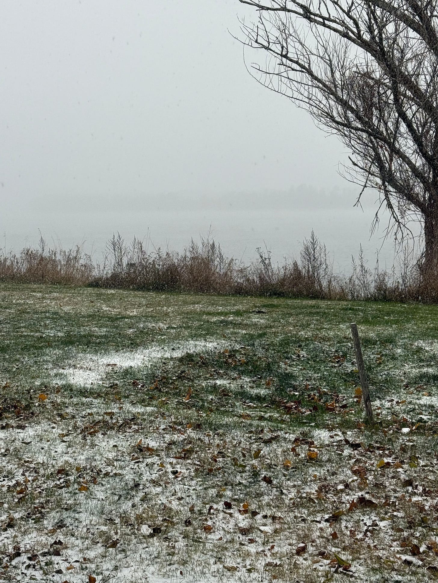 When I started writing this an hour ago, the sun was starting to crack the horizon, now there is no sun, just snow gently falling and making it harder to see the other side of the Saint John River.