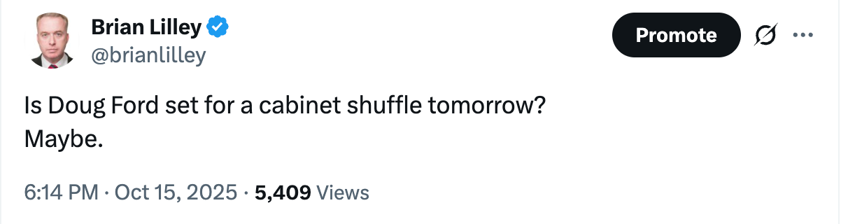 So, late in the day on Wednesday I got a message that the Ford government was about to engage in a cabinet shuffle.