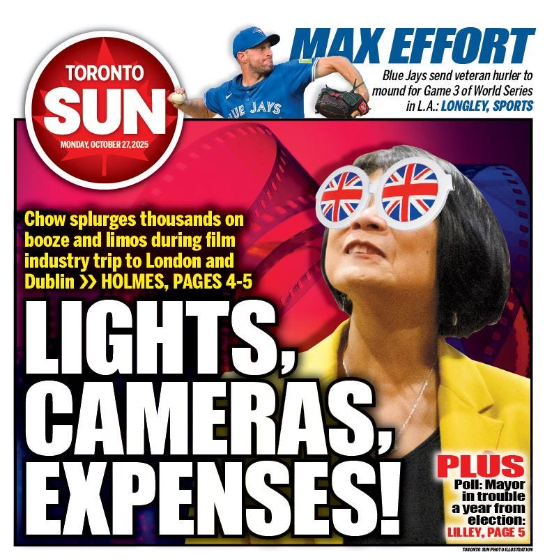 Two stories about Toronto city politics on our front page today including crazy spending on a foreign junket and the attempt to hide what was really spent. The other story was about a poll on the mayor’s race which isn’t good news for Mayor Olivia Chow.