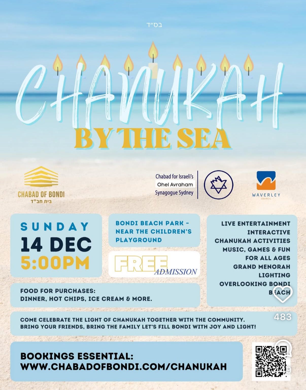 The event was a free community event organized by Chabad of Bondi. It included a public menorah lighting, free entertainment, activities for kids and of course jelly donuts.