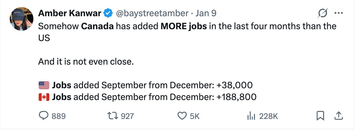 On this point and many others, the American economy is outperforming the Canadian economy and all those Canadians - especially Canadian politicians - hoping for a crashing American economy to reverse Trump’s tariffs are going to be disappointed.